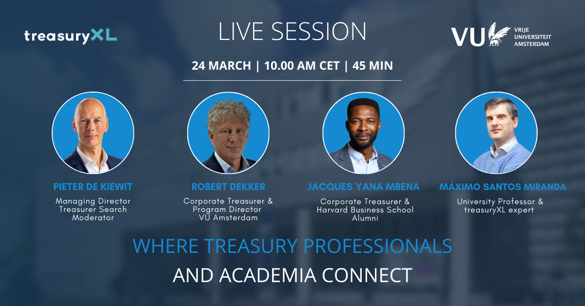 In this live session taking place next week, treasuryXL and Vrije Universiteit Amsterdam host a discussion on treasury education and the value it brings to the profession.